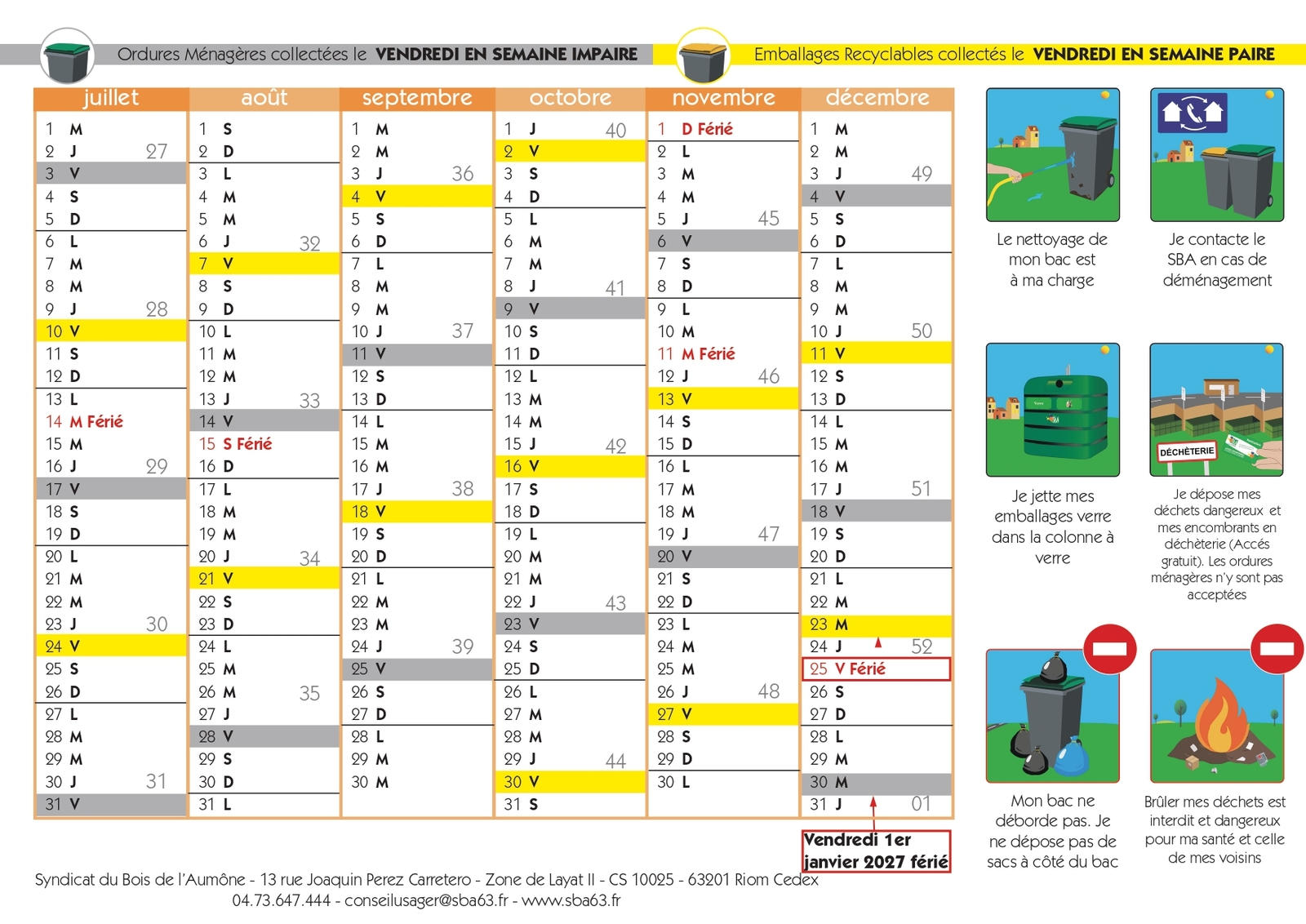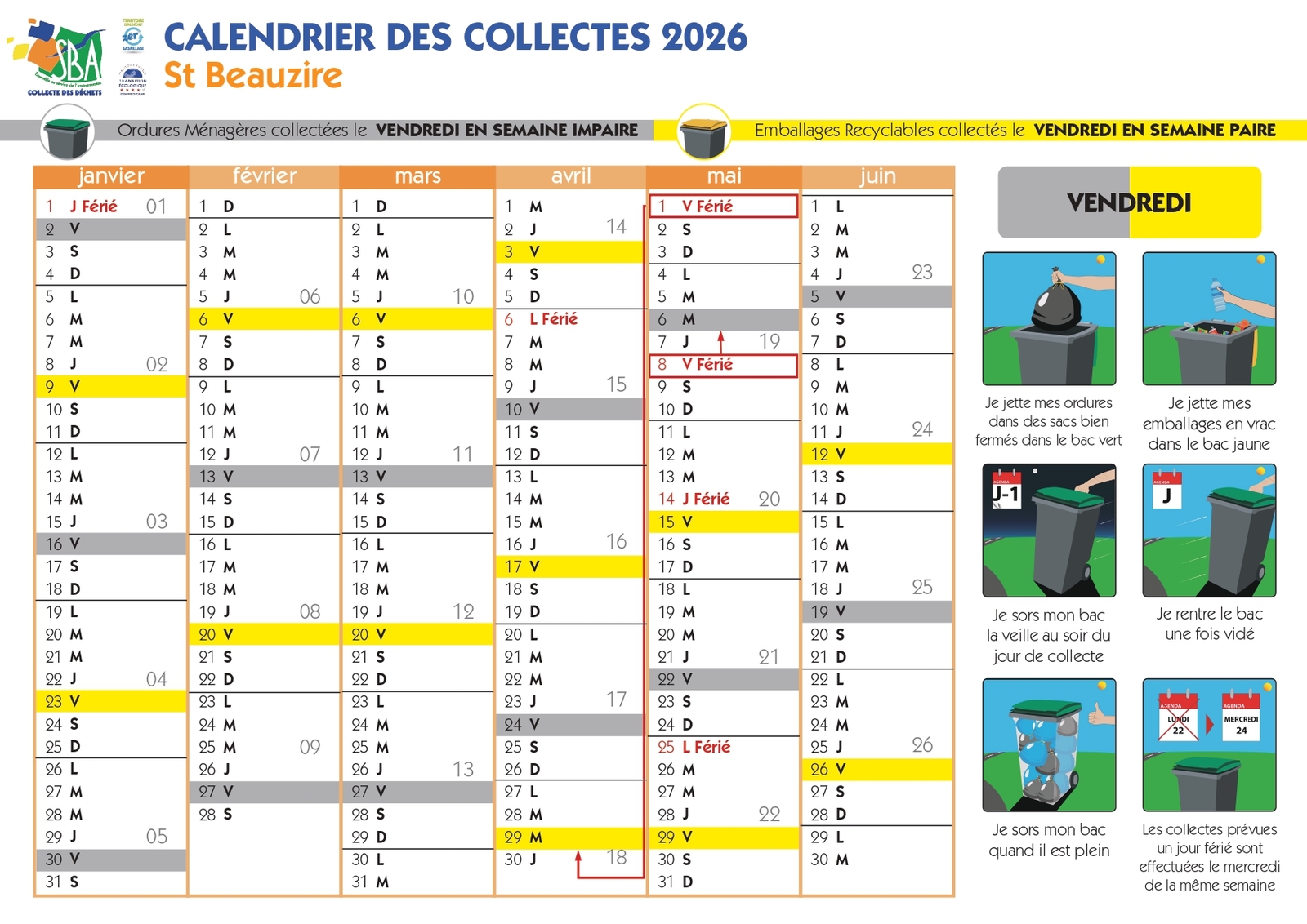 SBA: CALENDRIER DES COLLECTES 2026