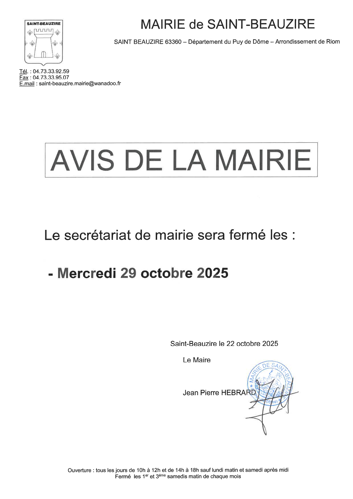FERMETURE MAIRIE