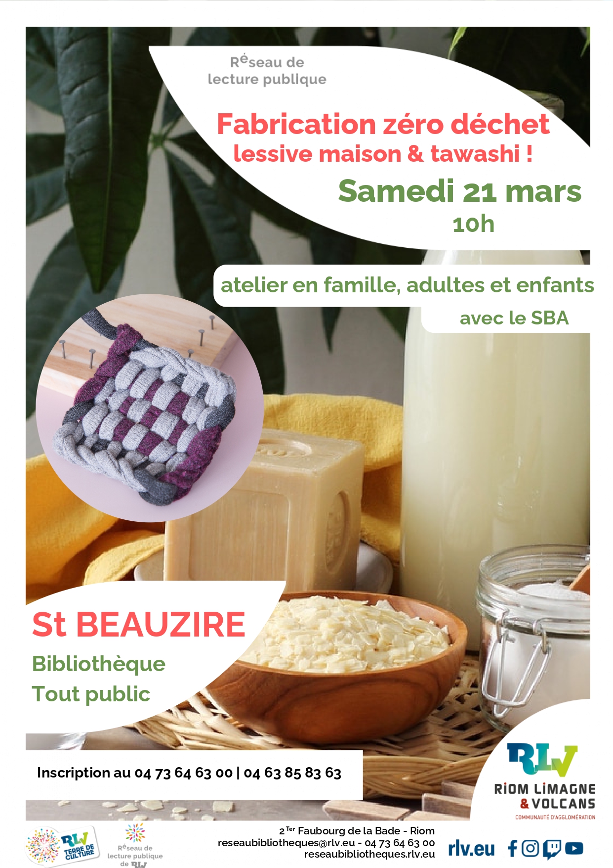 La bibliothèque de Saint Beauzire vous propose un atelier zéro déchet, lessive & tawashi.