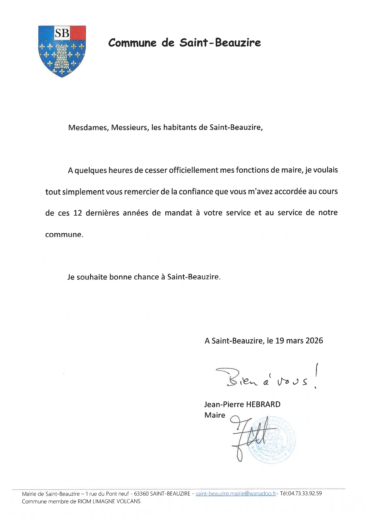 MOT DE M. LE MAIRE